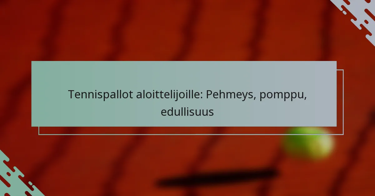 Aloittelijoille tarkoitetuissa tennispalloissa tulisi painottaa pehmeyttä, pomppua ja edullisuutta. Nämä ominaisuudet vaikuttavat merkittävästi pelaajan oppimiskokemukseen ja pelin yleiseen nautintoon.