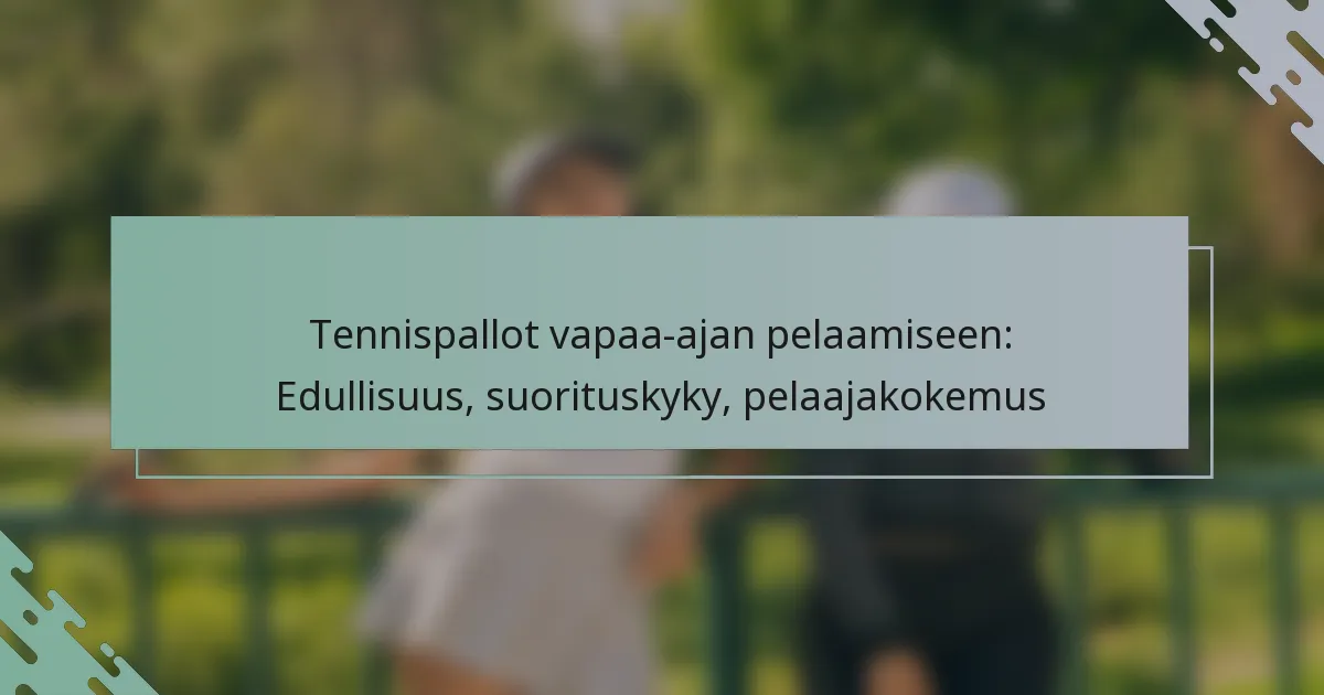 Tennispallot vapaa-ajan pelaamiseen löytävät tasapainon kohtuuhintaisuuden ja suorituskyvyn välillä, palvellen satunnaisia pelaajia, jotka etsivät miellyttävää kokemusta kentällä. Tärkeitä tekijöitä, kuten kestävyys, pomppu ja tuntuma, on olennaisia pelin parantamisessa, kun taas budjettikysymykset ohjaavat usein pelaajia kohtuuhintaisiin vaihtoehtoihin, jotka silti tarjoavat tyydyttäviä tuloksia.